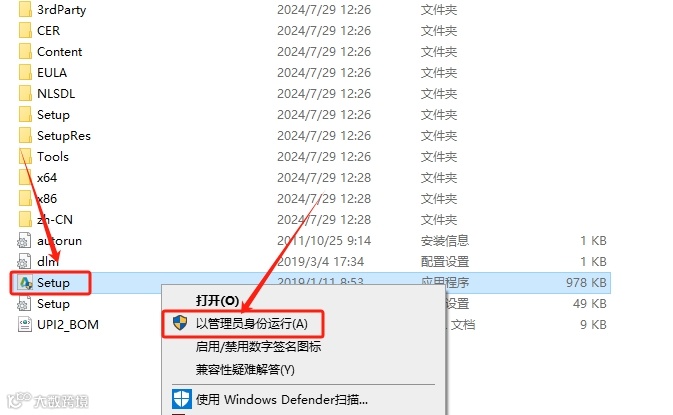 5.鼠标右击【setup】安装程序,选择【以管理员身份运行】。