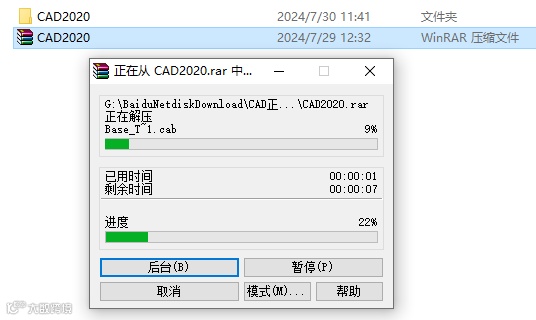 1.下载CAD2020安装包,然后鼠标右击压缩包,选择【解压到当前文件夹】。