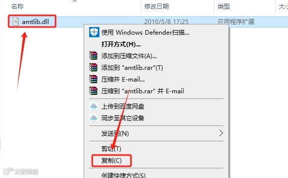 13.鼠标右击【amtlib.dll】选择【复制】。