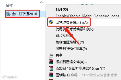 3.鼠标右击【金山打字通2016】安装程序,选择【以管理员身份运行】。