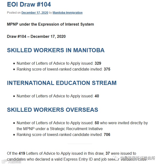 曼省技术移民EOI最新一轮(#104轮)筛选