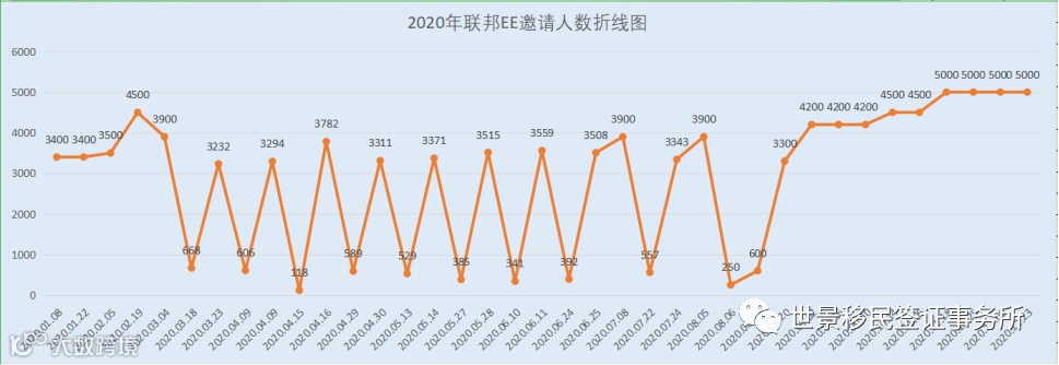 1. 2020年EE系统共发出10735份申请邀请ITA, 近11万人的年度邀请大幅高于去年的71400人,是EE系统开放5年来历史上最高的年度邀请数。
