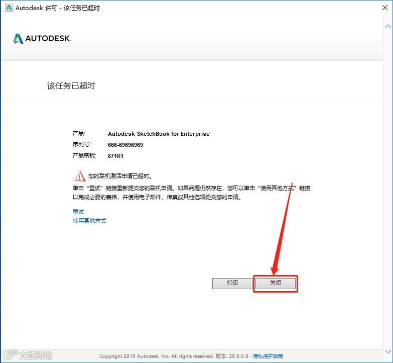 17.若出现如下提示或者其它显示未激活的页面,点击【关闭】。