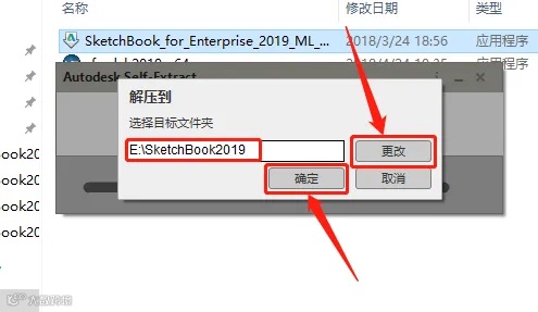 5.点击【更改】设置软件的解压路径,建议解压到除C盘之外的其它磁盘,设置好后点击【确定】。解压路径下【文件夹名称】不能有中文。