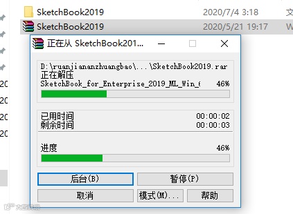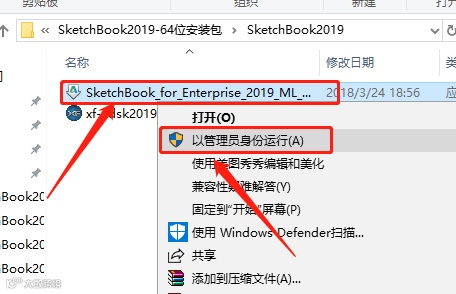 24.打开安装包解压后的【SketchBook2019】文件夹,鼠标右击【xf-adsk2019_x64】注册机,选择【以管理员身份运行】。