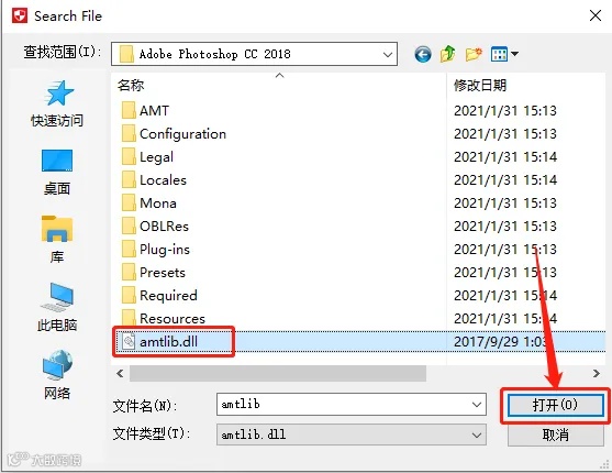 16.找到并选中【amtlib.dll】文件,点击【打开】。