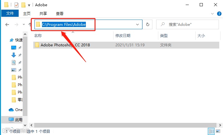 20.ps cc 2018默认安装在系统C盘,如果你想要更改路径,可继续下面的操作。打开C盘的安装路径文件夹C:\Program Files\Adobe。