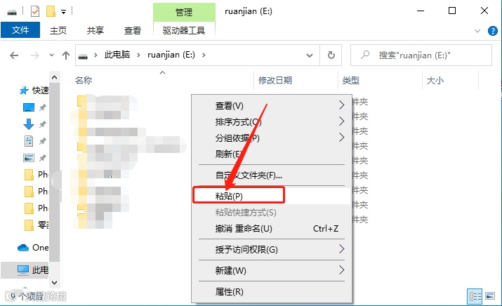 22.打开一个你需要安装在此的磁盘,然后鼠标右击选择【粘贴】。