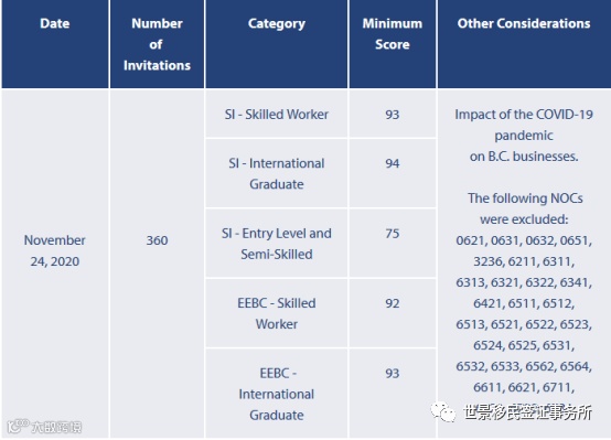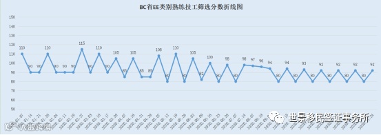 BC省技术移民项目邀请了360人,其中BC省快速通道-技术工人类(EEBC)最低邀请分92分;BC省快速通道-留学生类(EEBC)最低邀请分93分。