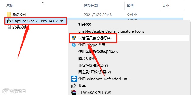 4.鼠标右击【Capture One 2……】安装程序,选择【以管理员身份运行】。