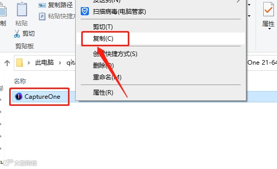 12.鼠标右击【CaptureOne】文件选择【复制】。