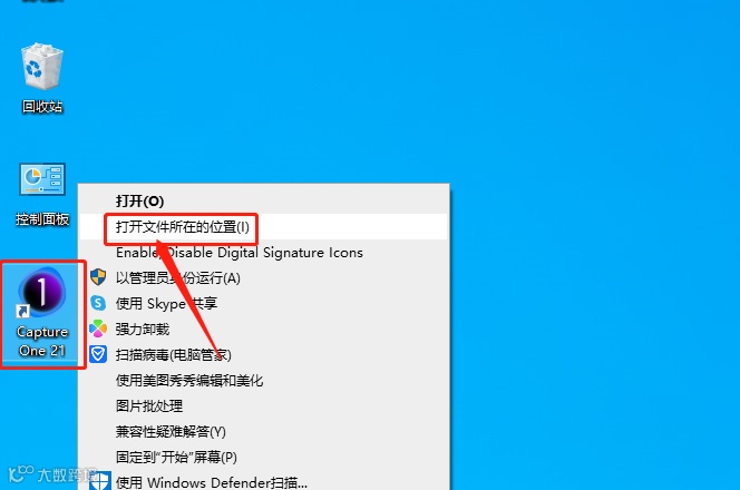 13.桌面找到Capture One 21软件,鼠标右击选择【打开文件所在的位置】。