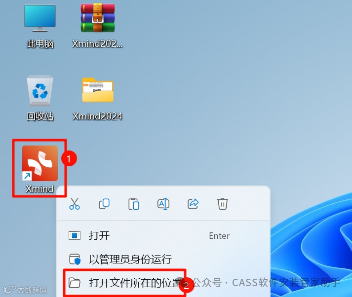 9.桌面右击【Xmind】选择【打开文件所在的位置】。