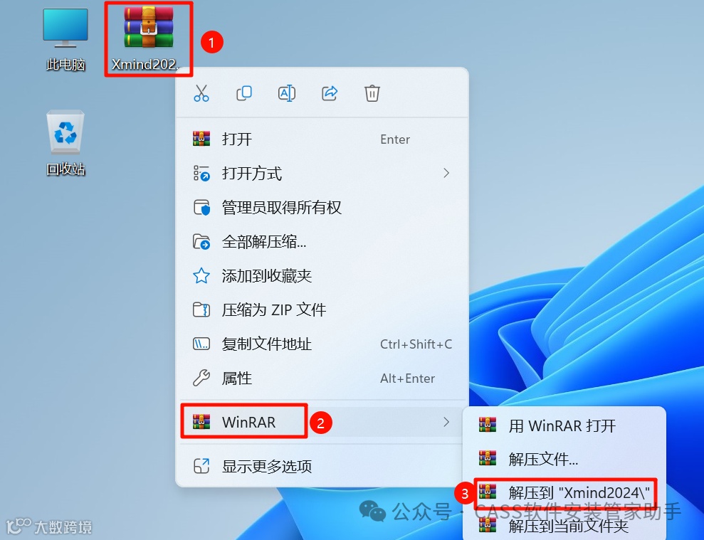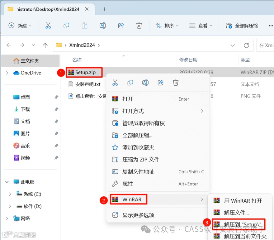 1.解压下载软件安装包,鼠标点击Xmind2024.zip,点击【解压到Xmind2024】。