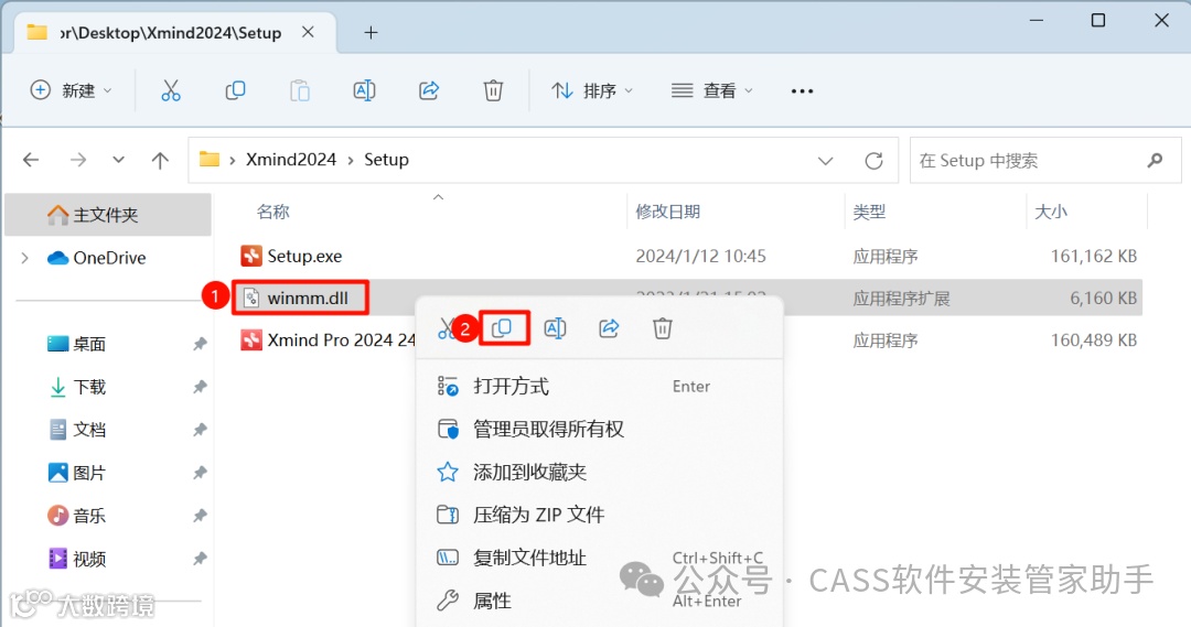 8.进入【Setup】文件夹,右击【winmm.dll】选择【复制】。