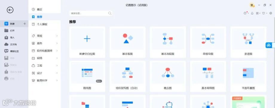 亿图图示(英文名称:Edraw Max)是一个简单易用的图形图标设计软件,该软件将复杂的绘图变得简单易用,无需掌握复杂的专业知识,全拖拽式操作,即学即用,不论背景,轻松上手;拥有280+图形解决方案,26000+绘图符号,1500+专业模板,一款软件就能承包你的日常绘图;支持导入Visio常用格式VSD、VSDX,可以一键导出WPS、Word、PPT、PDF、SVG和常用图片格式。