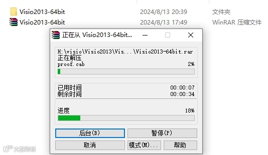 1.打开Visio 2013安装包,鼠标右击压缩包,选择【解压到当前文件夹】。