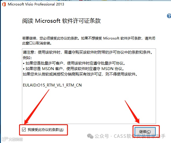 6.勾选【我接受此协议的条款】,然后点击【继续】。