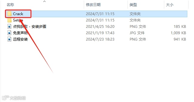 18.安装完成后,返回到解压的文件夹中,然后打开【Crack】文件夹。