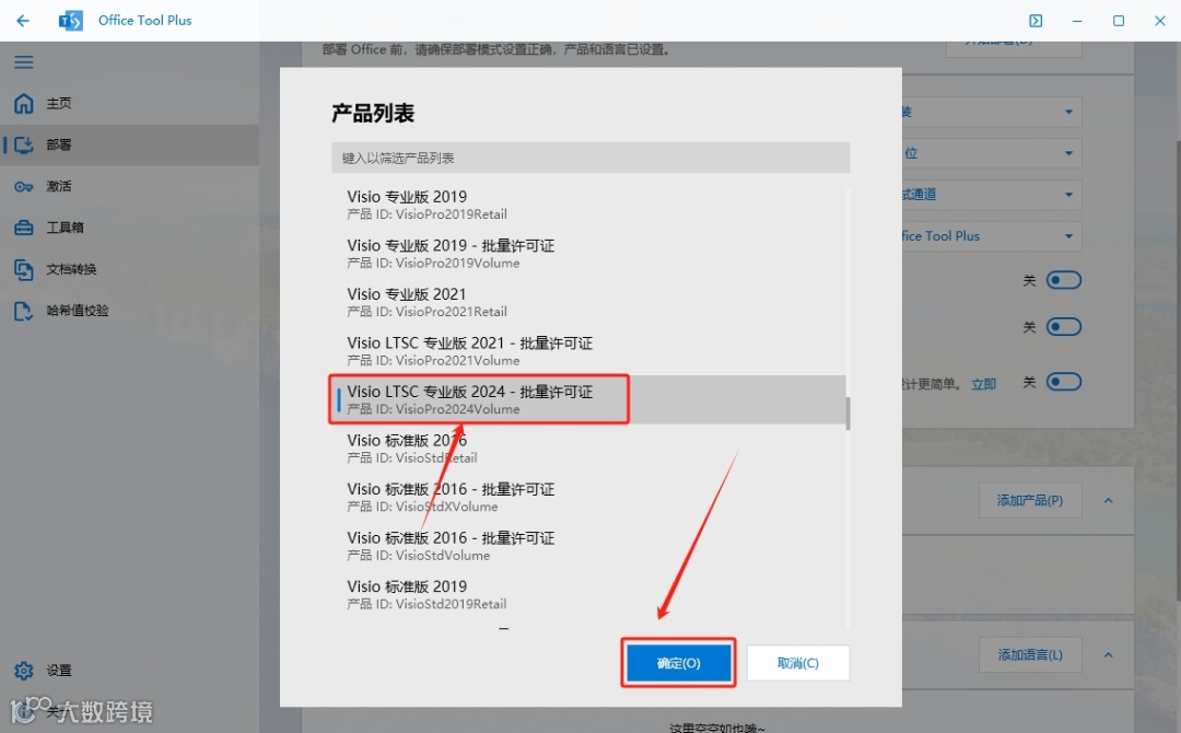 11.下拉找到【Visio 专业版 2024···】,然后点击【确定】。