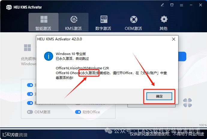 23.弹出的方框里显示已永久激活,点击【确定】,然后关闭掉激活程序。