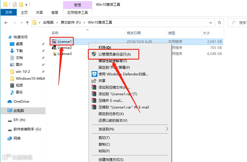 66.鼠标右击【License1】激活工具,选择【以管理员身份运行】。