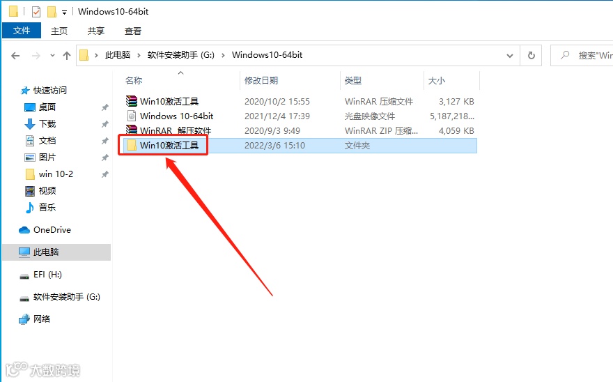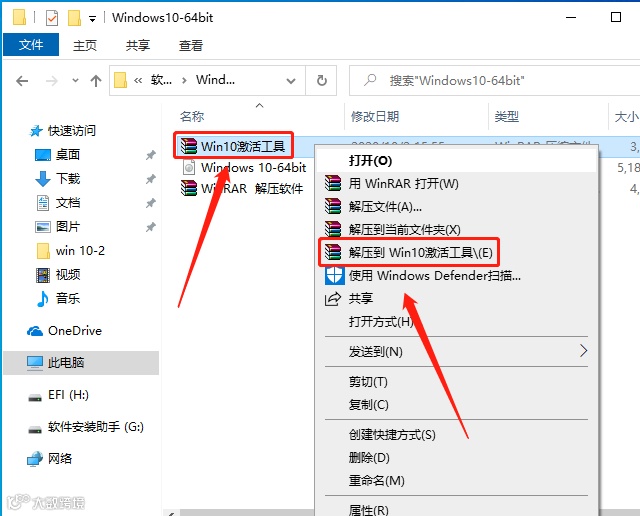 64.返回到系统文件夹,鼠标右击【win10激活工具】压缩包,选择【解压到win10激活工具】。