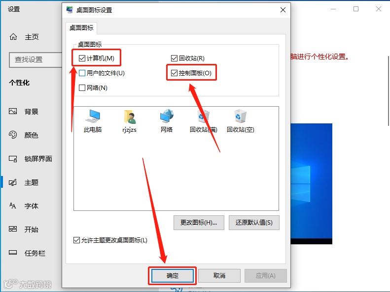 49.勾选【计算机】和【控制面板】,然后点击【确定】。
