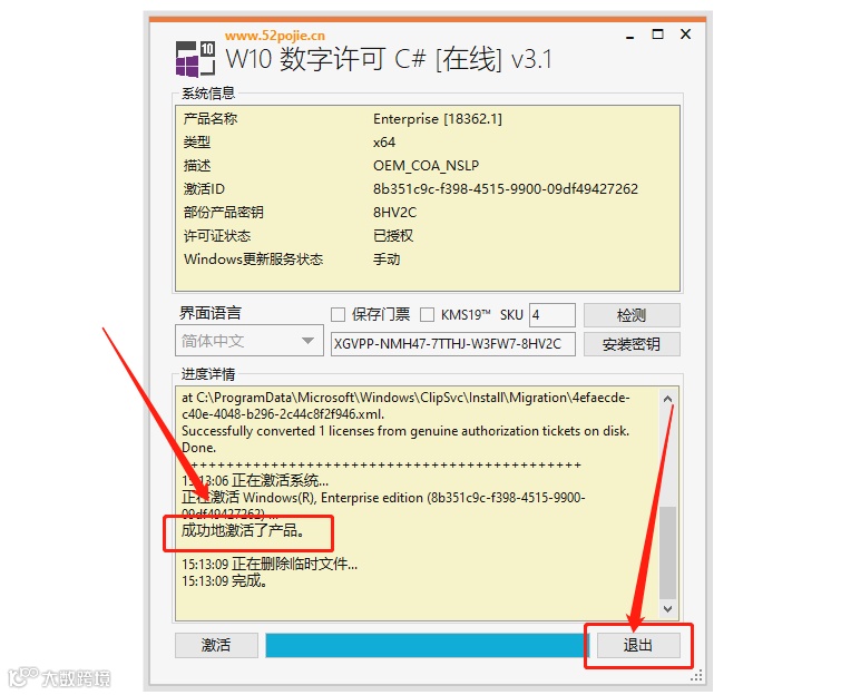 70.显示“成功的激活了产品”,我们直接点击【退出】。