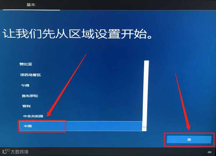 32.这里开始设置系统,选择【中国】,然后点击【是】。