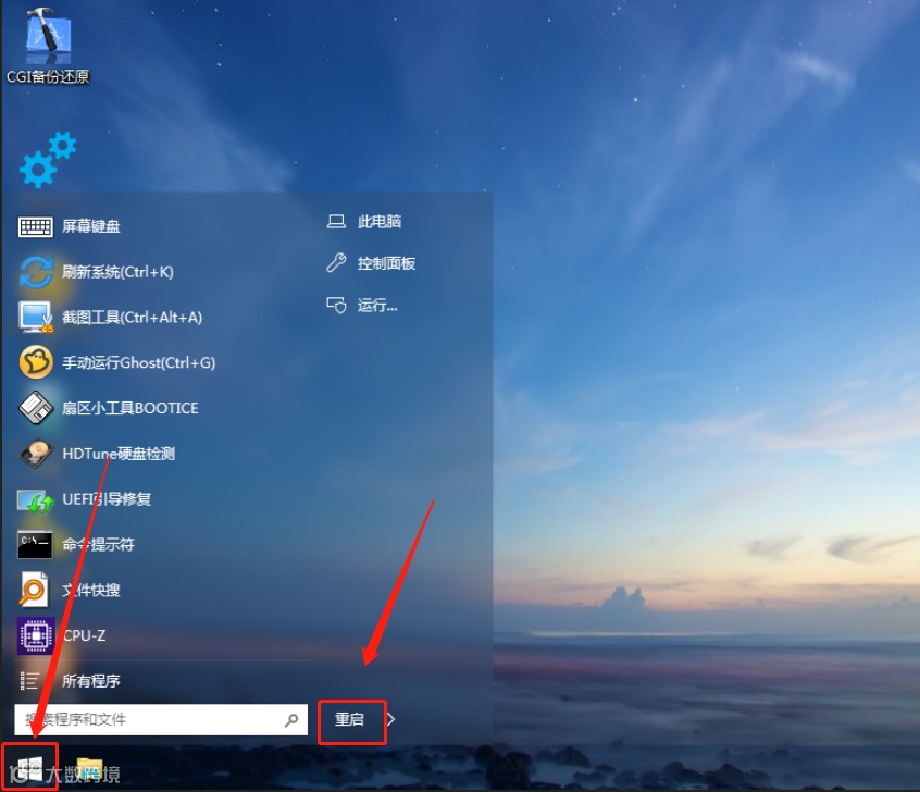 30.点击桌面左下角的开始菜单,然后点击【重启】,之后电脑会重新启动。