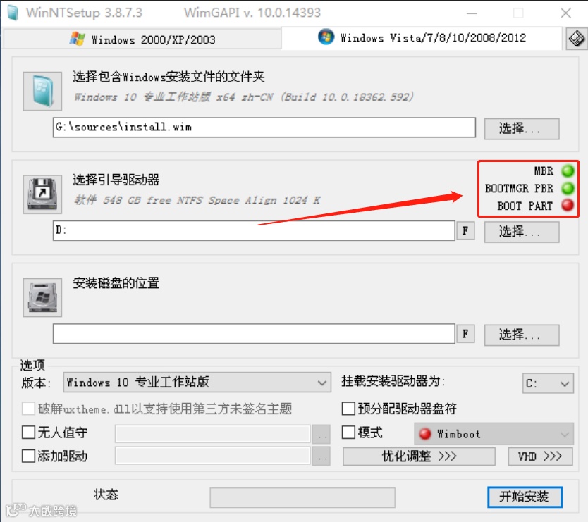 22.尝试选择其它磁盘,直到显示为三个绿色或只有一个黄色为止。