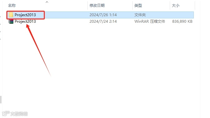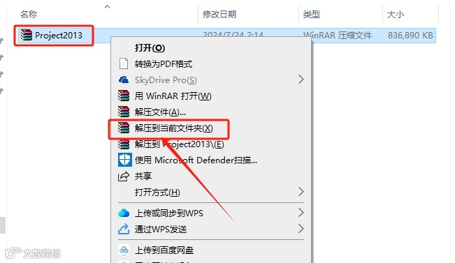 1.打开Project2013软件压缩包,鼠标右击选择【解压到当前文件夹】。