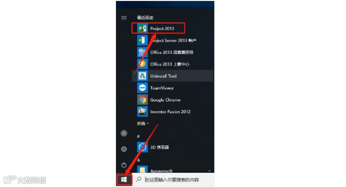 15.在左下角的开始菜单栏中打开project 2013软件。