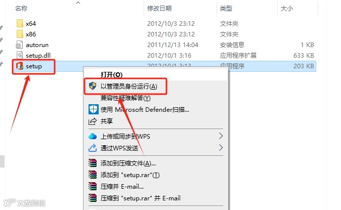 5.鼠标右键【setup】安装程序,选择【以管理员身份运行】。