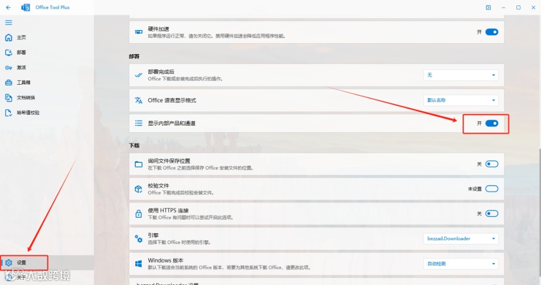 8.点击【设置】,开启【显示内部产品和通道】。