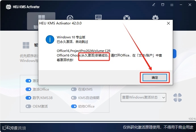 22.弹出的方框里显示已永久激活,点击【确定】,然后关闭掉激活程序。