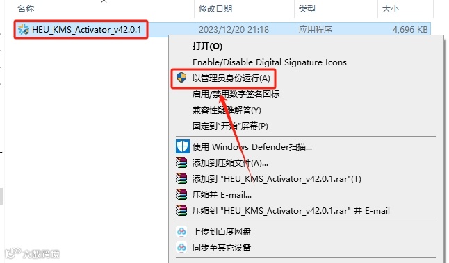 18.鼠标右击【HEU_KMS_Activator_42.0.1】激活程序,选择【以管理员身份运行】。