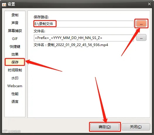 5.点击【保存】,在保存路径添加一个路径,后期保存的文件都在这个路径中,点击【确定】。