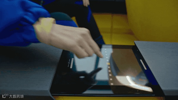 在车正中央的贯穿式扶手台上有内嵌入一台可提供娱乐的游戏平板。