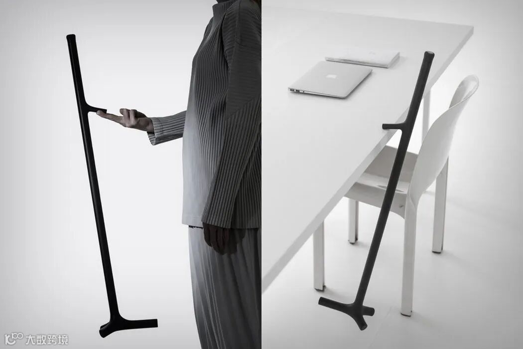 这款由3D打印技术制成的手杖,具有当代气息,彰显了一种时尚。该设计在颂扬极简主义的同时,重新定义了拐杖的功能。它的特点是一个3轴把手,可以牢牢地抓住地面。手柄的三叉设计可以让它垂直放置在地板上。棍子的承重轴有一个额外的突出部分,让棍子能够立在桌子边上。