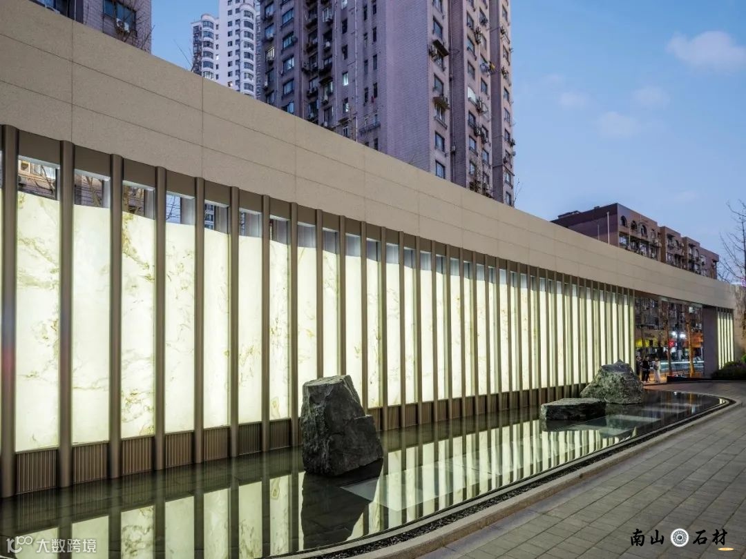 强度大、抗紫外线、耐候性能优越,同时又能保持石材天然纹理的【热熔复合石材玻璃】,不仅能够助力建筑师致敬经典,另外,配合不同的灯光设计,还可以产生独特的光影效果。