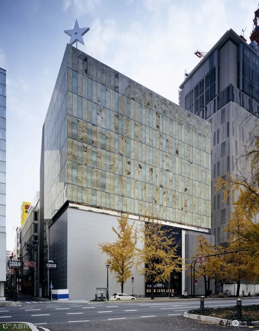 日本大阪市熙攘的心斋桥商业街,隈研吾建築都市設計事務所设计的LVMH OSAKA大楼。隈研吾选取了玉石作为主材,用高精度的设备将玉石切成薄片,保留其天然的美丽纹理,又增加了其从未有过的通透性。
