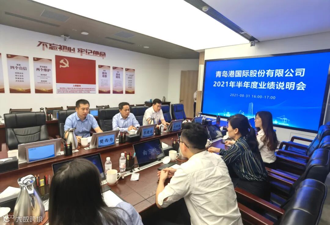 为贯彻落实中国证监会等监管机构对投资者保护的工作要求,加强市值管理,增进与投资者的沟通交流,8月31日,青岛港(601298.SH,06198.HK)召开2021年半年度业绩说明会,山东港口青岛港党委书记、董事长苏建光,山东港口青岛港党委副书记、董事,青港国际总经理王新泽等主要管理层出席了业绩说明会。