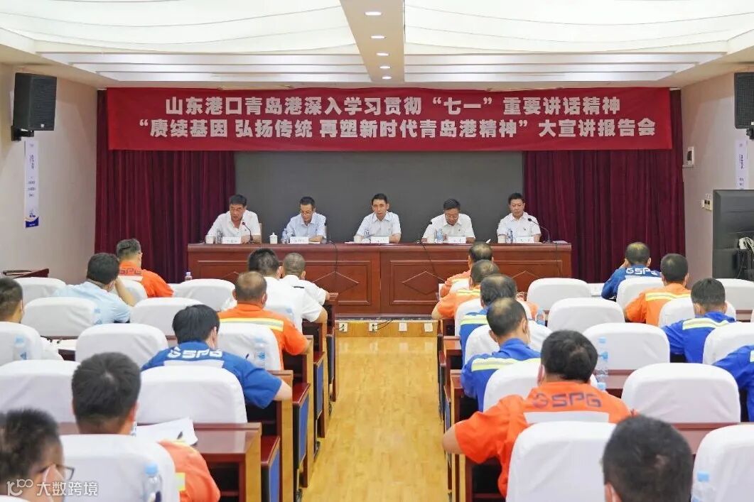◇ 第四组宣讲团成员在前港公司会议室进行大宣讲,1个主会场和10个视频分会场座无虚席,435名职工翘首以盼的“精神套餐”如约而至。宣讲句句掷地有声、声声铿锵有力,台下观众掌声雷动、热血沸腾。