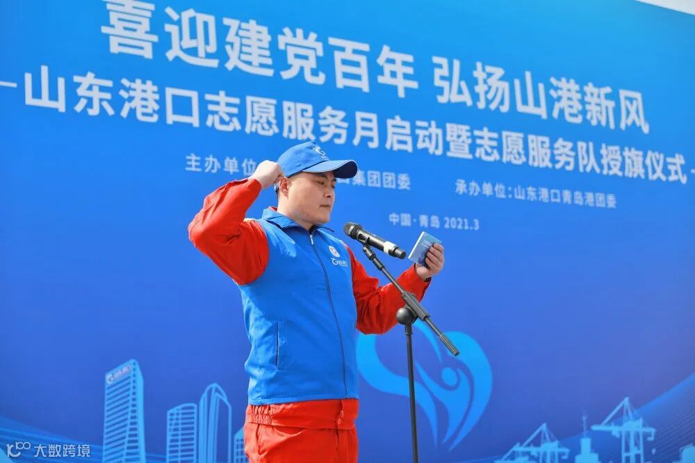 山东港口举行志愿服务月启动暨志愿服务队授旗仪式