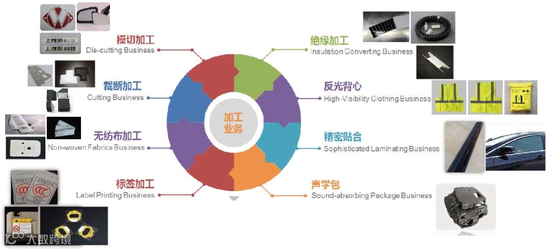 我们专注于汽车行业为主的材料供应和生产制造,提供各种新材料及加工技术解决方案,目前主要加工业务有精密模切,泡棉裁断、高品质标签印刷、无纺布印刷,绝缘加工,车用反光背心,ETF贴合和声学包总成。2016年9月位于浙江嘉善的新工厂正式投入运营,新工厂总投资6000万人民币,总用地面积20658m2 。