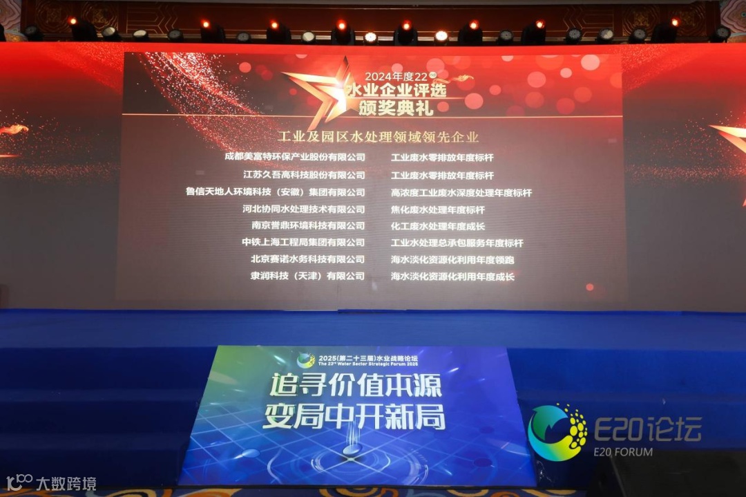 3月27-28日,由E20环境平台主办的"2025(第二十三届)水业战略论坛"在北京友谊宾馆隆重举行。本次论坛以"追寻价值本源 变局中开新局"为主题,汇聚政府代表、行业专家及领军企业代表,共探"十五五"时期水务行业发展新路径。作为E20环境平台战略合作伙伴,美富特环保集团应邀出席,并凭借在工业污水治理领域的技术创新与卓越贡献,荣膺“工业废水零排放年度标杆”荣誉。