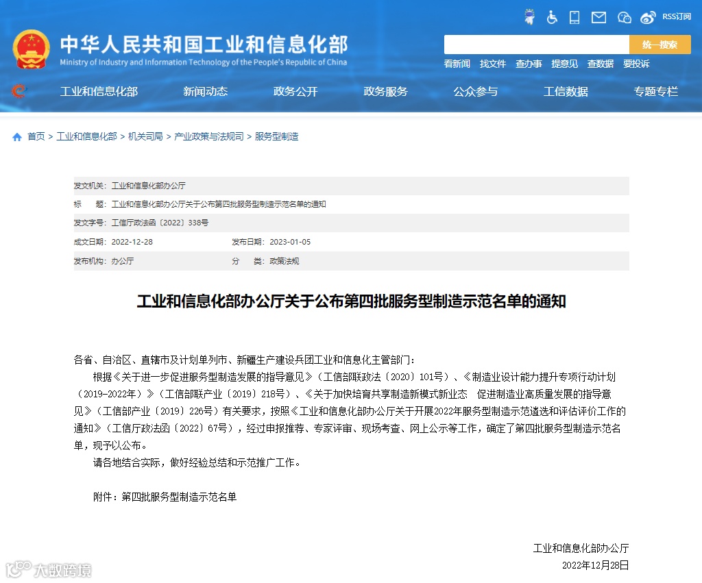 2023年1月5日,工信部发布了《工业和信息化部办公厅关于公布第四批服务型制造示范名单的通知》,成都美富特环保产业股份有限公司凭借在环境污染防治方面强大的全产业链综合服务能力荣登榜单。四川省仅7家企业入选,美富特为其中唯一一家环保企业。服务型制造示范企业是工信部为贯彻国家关于推动先进制造业和现代服务业深度融合,发展服务型制造的决策部署,为制造强国建设提供有力支撑,面向定制化服务、供应链管理、全生命周期管理等服务型制造创新模式开展的示范遴选。入选企业具有鲜明服务型制造特点,并通过战略规划、组织保障、技术创新等措施进行服务型制造转型升级,取得显著成效,其生产技术与工艺、服务能力与水平行业领先。