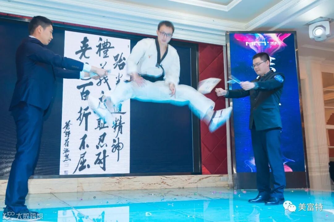 工艺研发部同仁先以嘻哈舞蹈的形式给大家开了一个玩笑,后来由蒲亮带来了真正的跆拳道表演,惊艳全场!